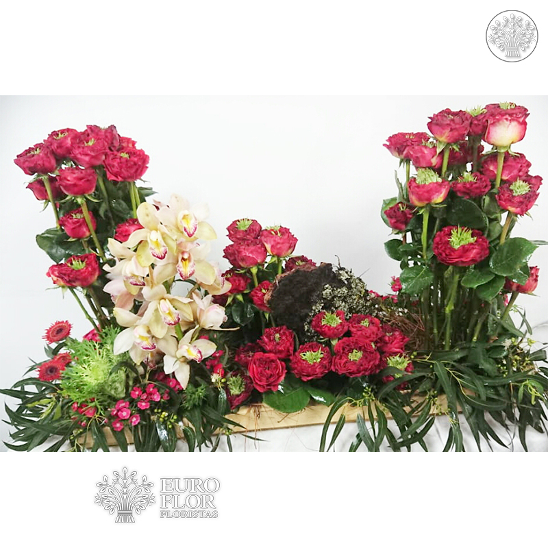Pieza decorativa con Garden roses, suculentas y orquídeas.