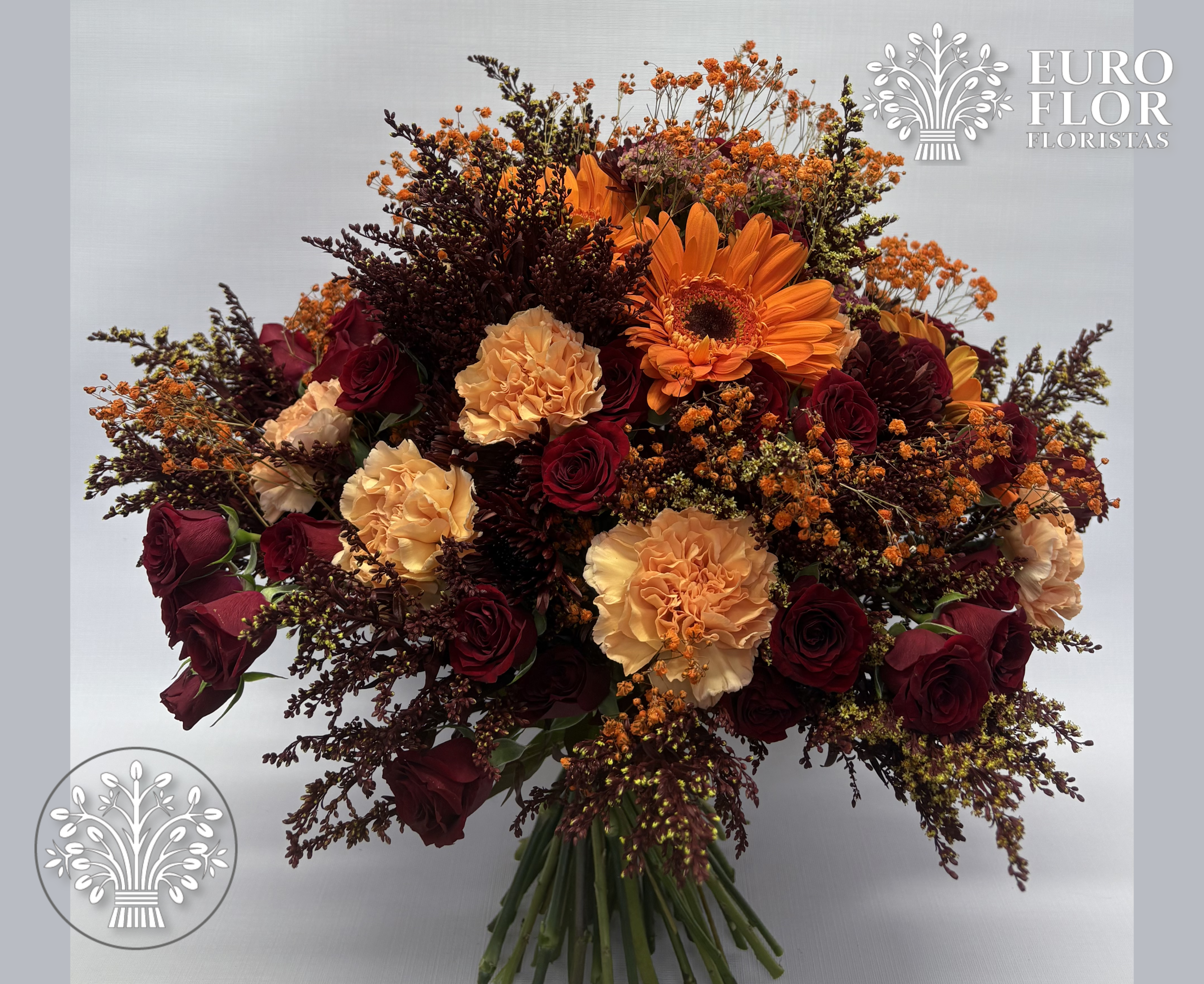 Increíble bouquet en tonos ocres, amarrado con fibra natural