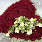 Lleva el romance al siguiente nivel con el Corazón Naciente, una obra maestra de la floristería que combina la pasión de las rosas rojas con la pureza de las flores blancas. Este imponente diseño floral no es solo un arreglo, es una declaración inolvidable de amor y compromiso.
