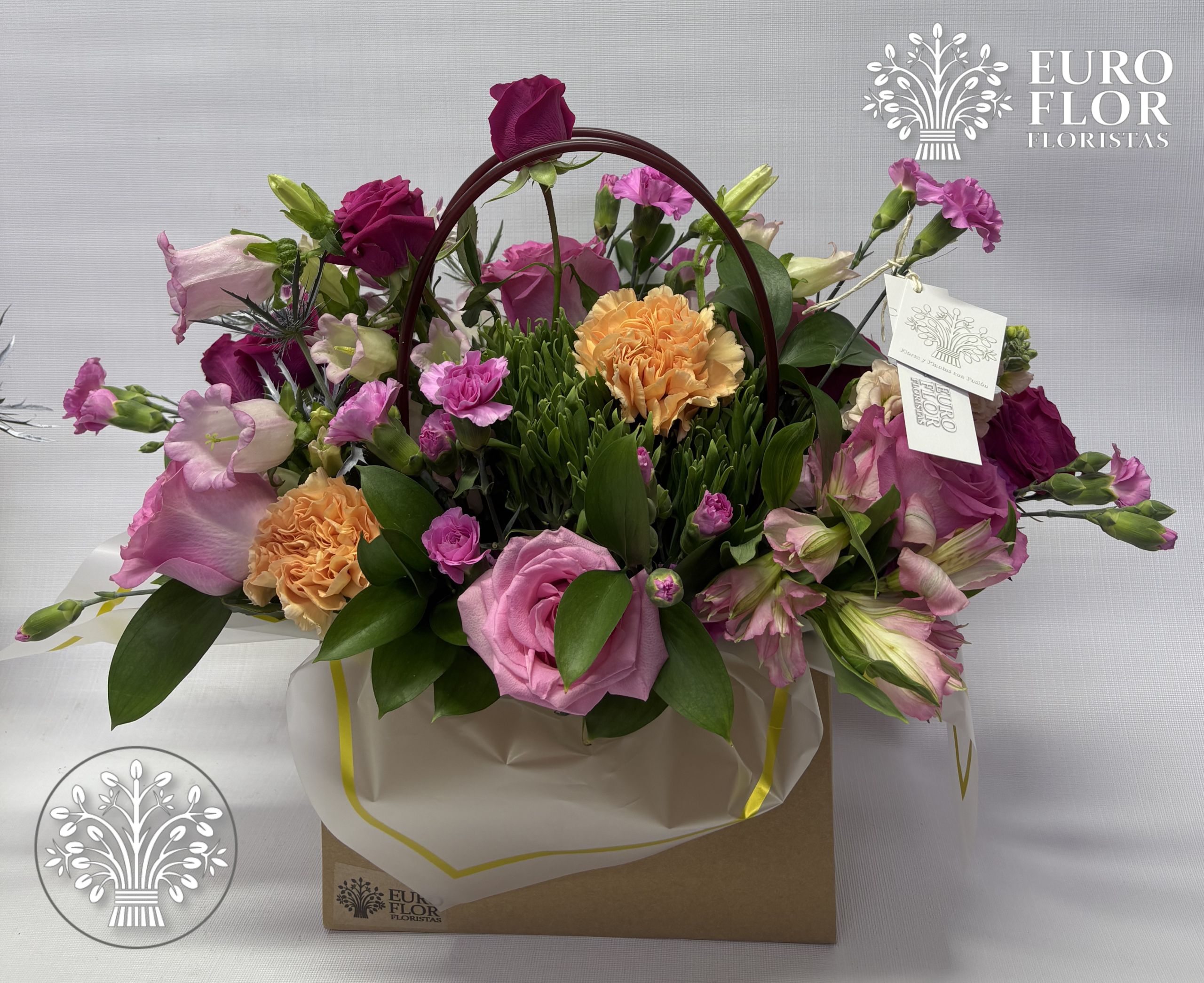 Nuestras Carteras Florales son arreglos de flores frescas diseñados en elegante caja con asa, listas para sorprender y regalar. Una combinación vibrante de colores y texturas que transmite alegría y frescura en cada detalle.